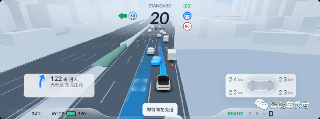 同时还能够实现红绿灯识别起停、自主打灯变道、路口左/右转、环岛通行、高架和隧道通行、避让道路施工、避让其他交通参与者(行人、骑行者)等。