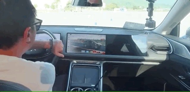 意思就是,车内或车外的感知系统,会将真实世界立体化投射到车机屏幕内,实时呈现人驾与车驾过程中的驾驶感知信息,相当于实时对车辆所处场景进行复现。