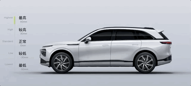 整个G9的空气悬架上下最大行程有100mm,具备5个档位的调节模式,具备智能迎宾上下车、特定地点记忆和语音控制等功能。
