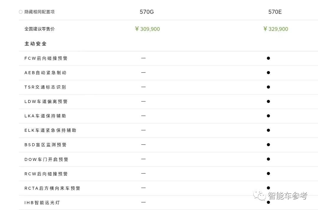 相应地,570G版本不具备一系列主动安全功能,即没有AEB。![]()
