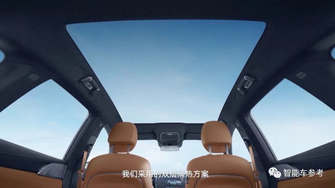 还配有全景天幕,采用双层隔热方案和五层复合结构,可以同时做到隔热、隔音、防爆,紫外线隔绝率大于99.9%。