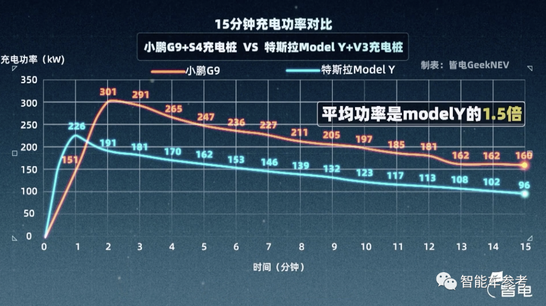 在这期间,G9充电功率达到301kW,远高于Model Y的226kW。小鹏G9的平均充电功率是Model Y的1.5倍。