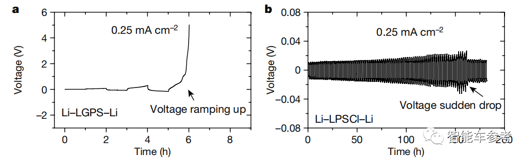 值得一提的是,如果没有石墨或金属铟这样的保护层,电压一升高,电池(锂金属为阳极,LGPS为电解质)就容易短时间内失效。