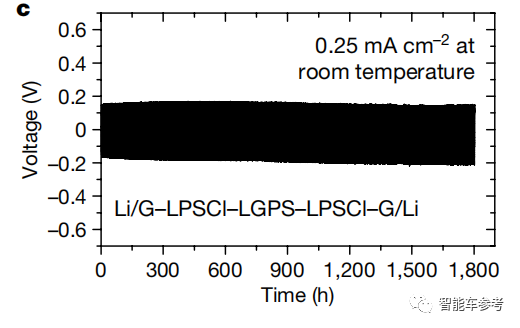 除了提高安全性,这种设计还让电池在0.25mA/cm²电流密度、室温的情况下,循环使用1800小时,性能表现远超单一固态电解质的电池。
