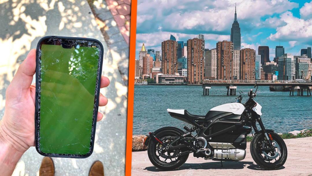 可没想到,摩托开过路面的隆起处,稍微颠了一下,结果把新买的iPhone 14 Pro Max给颠出去了。