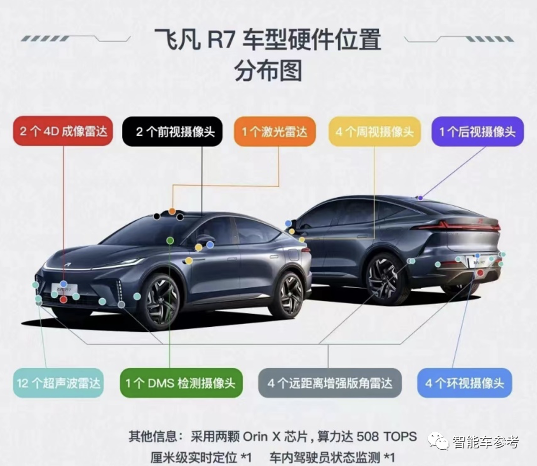 飞凡R7具有高阶领航能力,另一个依据就是车辆本身的智能驾驶硬件配置。