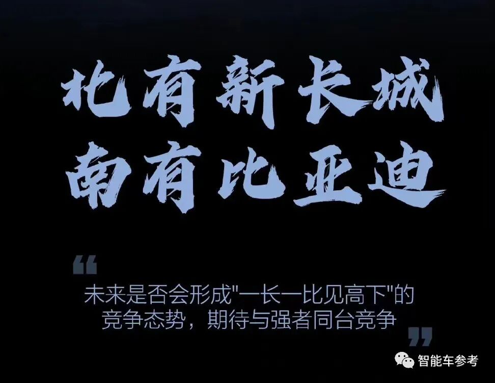 正如新车发布会上,哈弗他们自己也反复多次提到比亚迪,又是“致敬”、“友商”,又是“北长城,南比亚迪”。