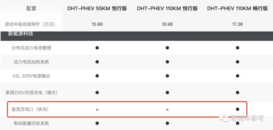 在这里,我们把同为110km纯电续航的两款车型挑出来,进行了对比。