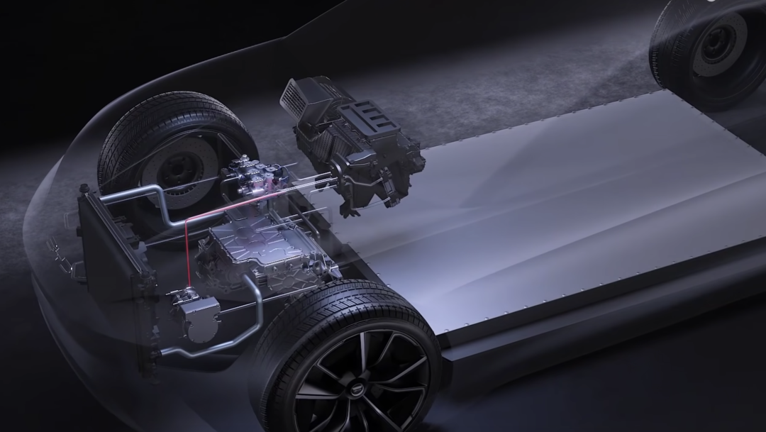 一个例子是,纯电平台的电机安装在两轮之间的车墙上,可以轻松在机舱内里安排热泵空调,以此减少对电池的消耗,提升续航。