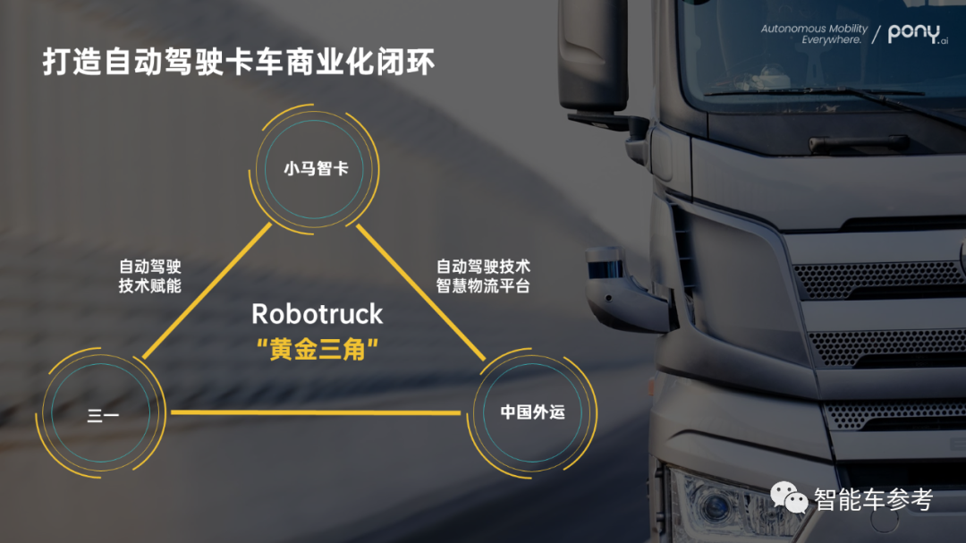 所以,在交付第一款量产自动驾驶卡车之外,小马智行还和三一重工、中外运达成了智慧物流战略联盟,号称要打造“黄金三角”。