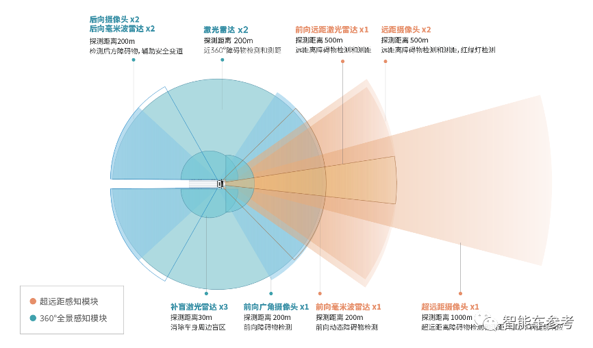 传感器方案沿用多传感器深度融合技术,传感器整体数量20个,主要采用车规级传感器件,实现自动驾驶超远距感知、360°全景无盲区。