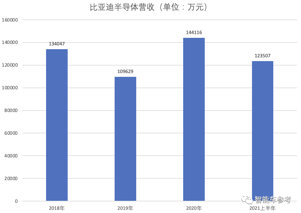 而从比亚迪半导体这几年来公布的财务数据可以看出,2021年半年营收,已经接近甚至超过前几年全年营收。