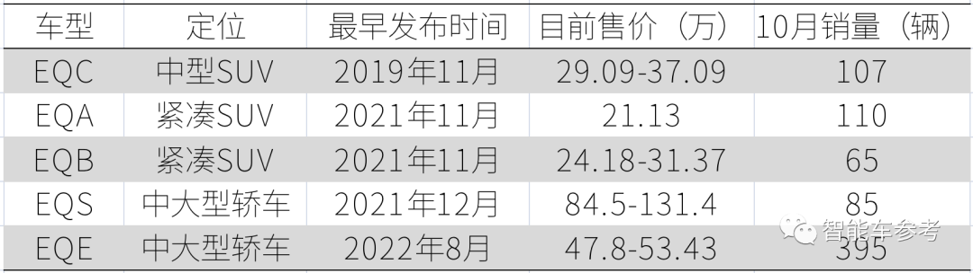 根据新车交强险购买数,今年10月奔驰五款电动车单月销量加在一起还只有762辆,相比国内造车新势力真的有些惨不忍睹。