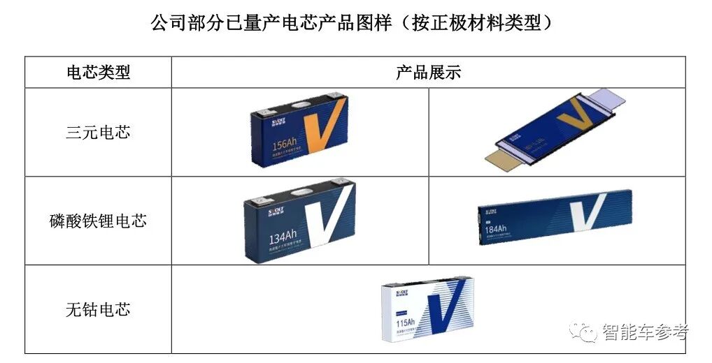 首先来看电芯,按正极材料来区分,蜂巢能源电芯产品覆盖三元、磷酸铁锂、无钴等。