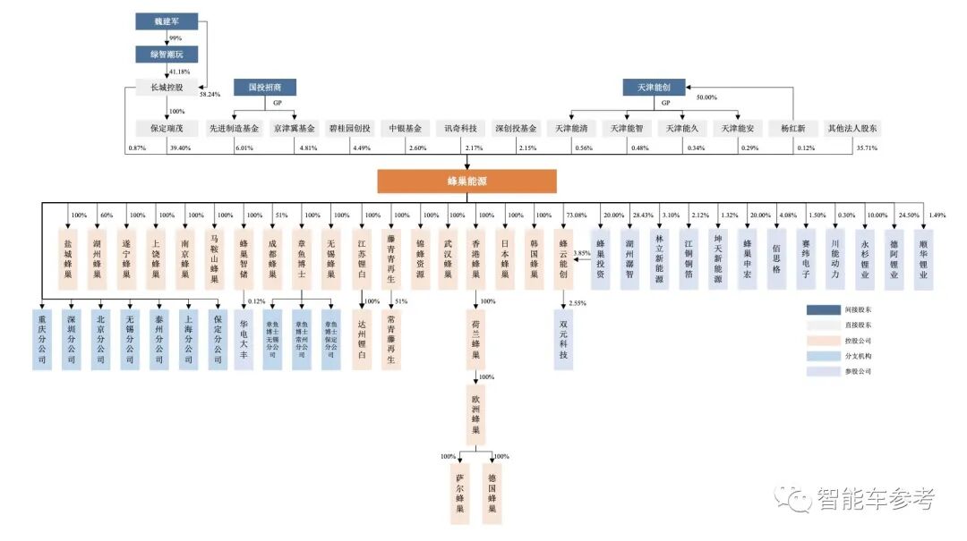 本次蜂巢能源科创板IPO上市,计划发行25%的股份,原股东持股比例也会相应发生变化。