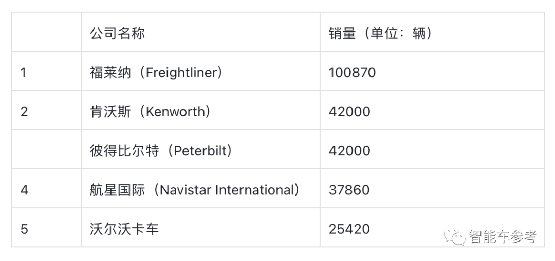 根据美国卡车销量最多年份数据,排名前五分别是: