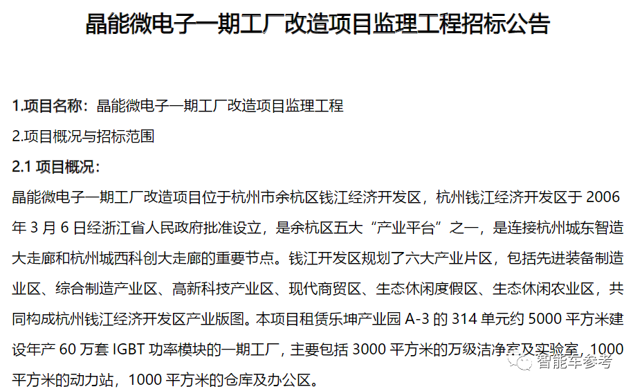 今年12月6日,吉利招标平台发布《晶能微电子一期工厂改造项目监理工程招标公告》,项目位于杭州钱开区,一期工厂年产 IGBT 功率模块约为60万套。这意味着吉利也加入 IGBT 封装的自制队伍。