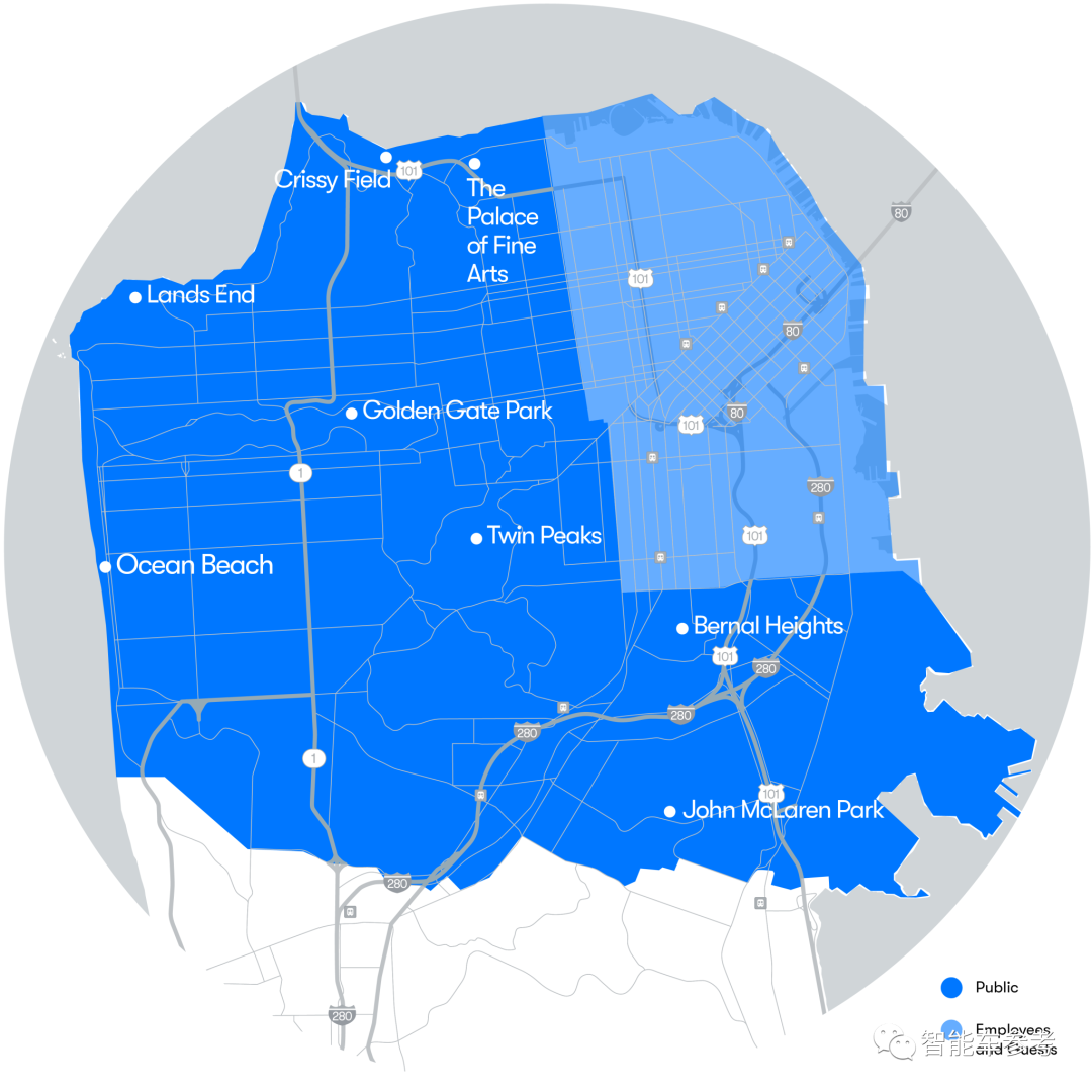 受邀用户每天在任何时间段都可以搭乘无人出租车,去任何地方都行,只要行驶面积在旧金山两倍的区域内。