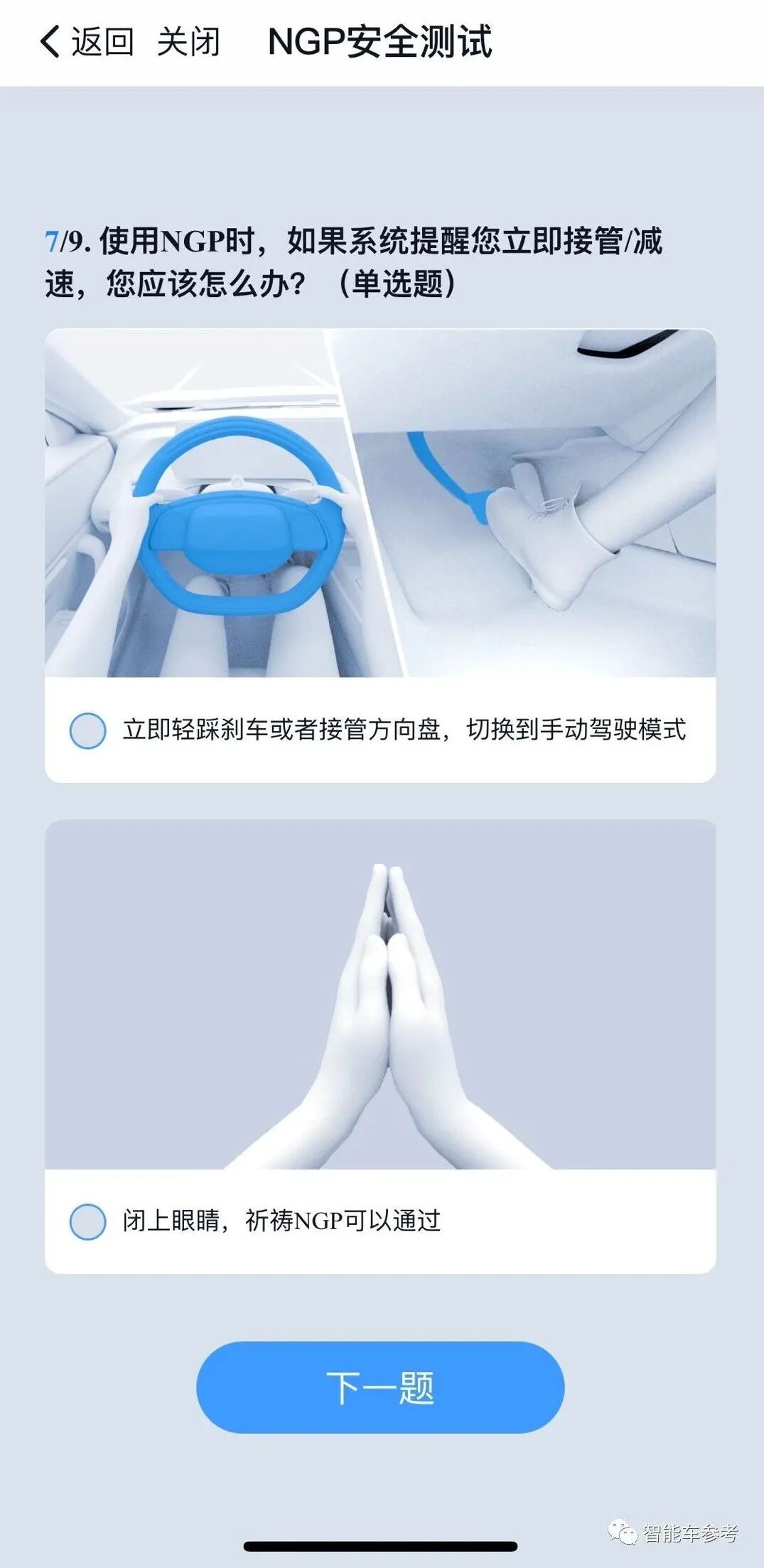 使用前,需要完整观看NGP安全提示视频,然后通过驾驶员考试,才能解锁NGP能力。