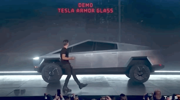 总之,2019年发布会现场内外,特斯拉证明了赛博皮卡搭载的新玻璃,确实超级耐用,达到了防护新高度。