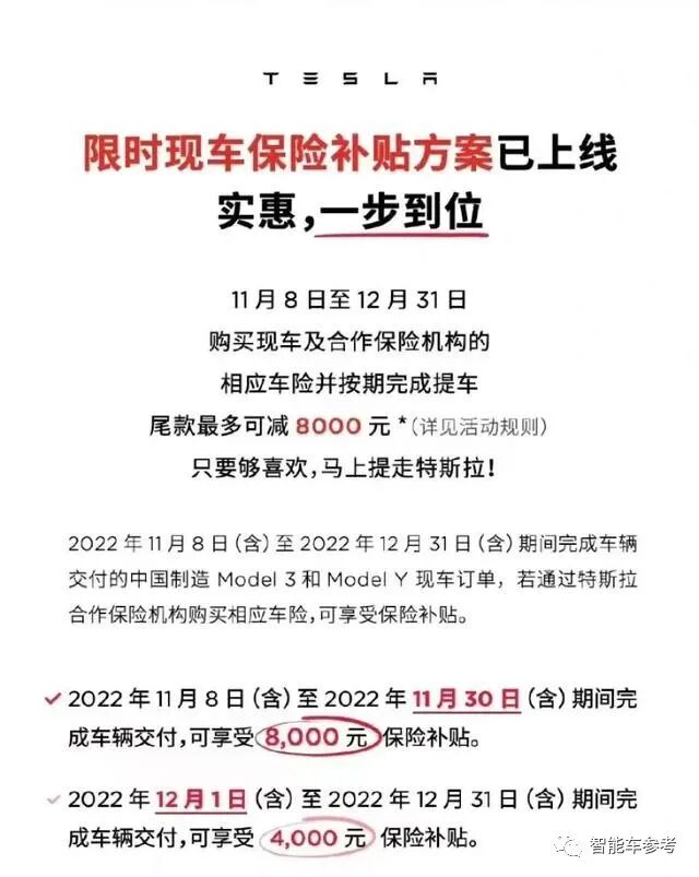 其次,特斯拉主要市场之一的中国市场,从9月开始接二连三推出优惠措施。先是保险补贴,后又全系降价,这个月又推出现车价格优惠。
