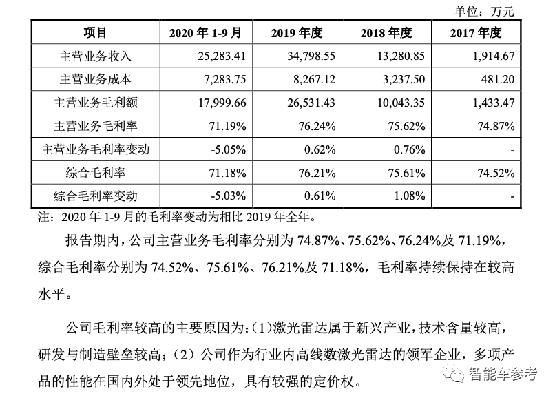 另外,禾赛上一次IPO材料中,还透露出一个关键信息——超高毛利率。