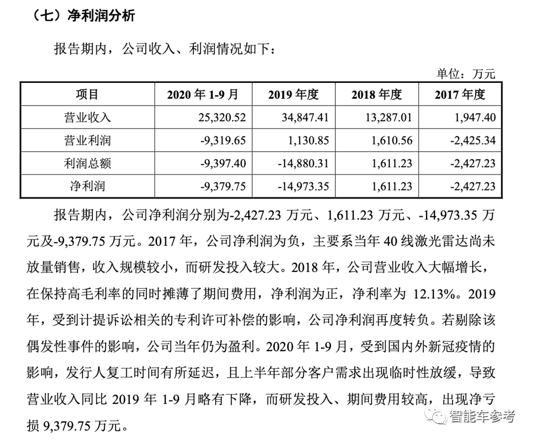 禾赛科技2017年、2018年、2019年营收分别为1947.4万元、1.33亿元、3.48亿元;禾赛科技2020年前9个月营收为2.5亿元。