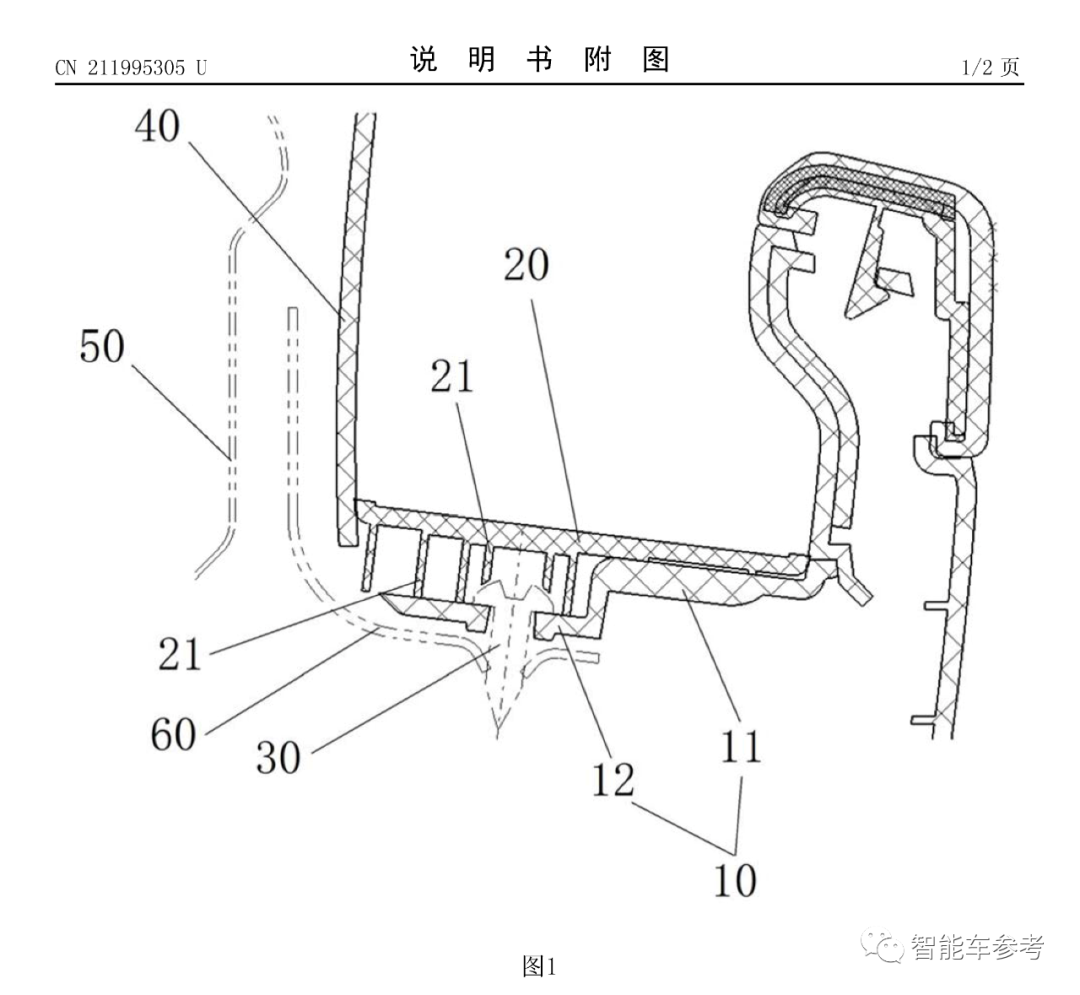 从专利图来看,最直观的要属车身。恒大对应的专利有车门设计、保险杠等。