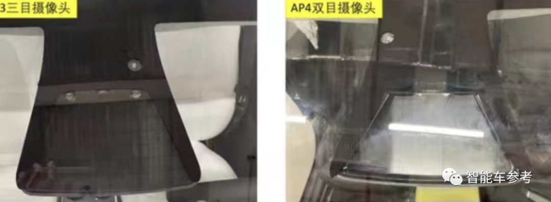 首先,是安装在前挡的前视摄像头,由三目变成了双目。