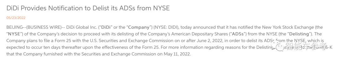 后来到了2022年5月,滴滴官方发公告称,会尽快将公司的美国存托股票从纽交所退市。