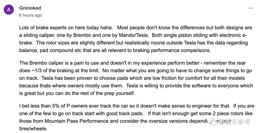 只有真正下赛道激烈驾驶,Mando刹车的抗衰减、响应速度、刹车力道等等劣势才会被感知到,而这一部分用户,恐怕不会超过特斯拉全部车主的5%。