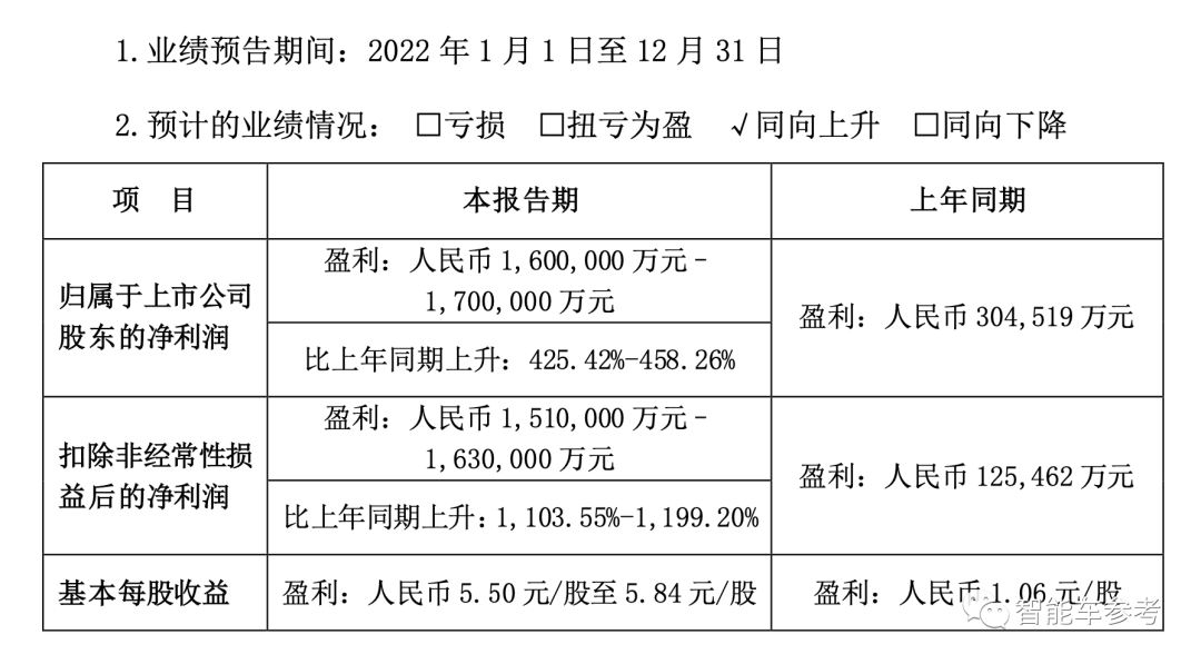 比亚迪:预计2022年净利超160亿,同比增长超425%