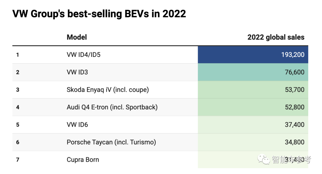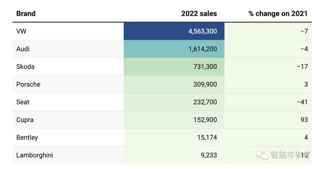 大众集团内部,各品牌2022年销量表现如下: