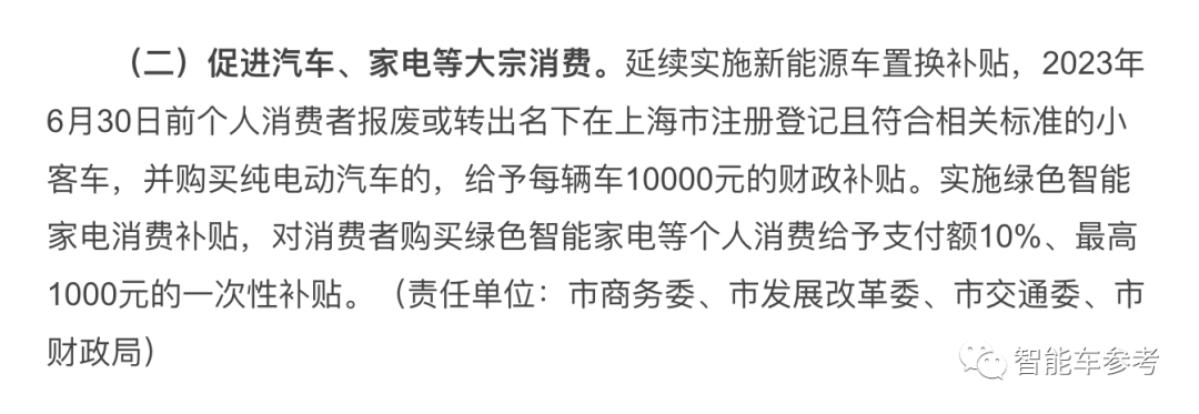具体表现为,在今年6月30日前,个人消费者报废,或转出名下在上海市注册登记且符合相关标准的小客车,并购买纯电动汽车的,给予每辆车1万元的财政补贴。