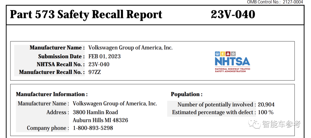这次问题车辆是2021年版本的ID.4,具体为2020年5月26日至2022年1月20日期间生产,此次大众一共会召回20904台。
