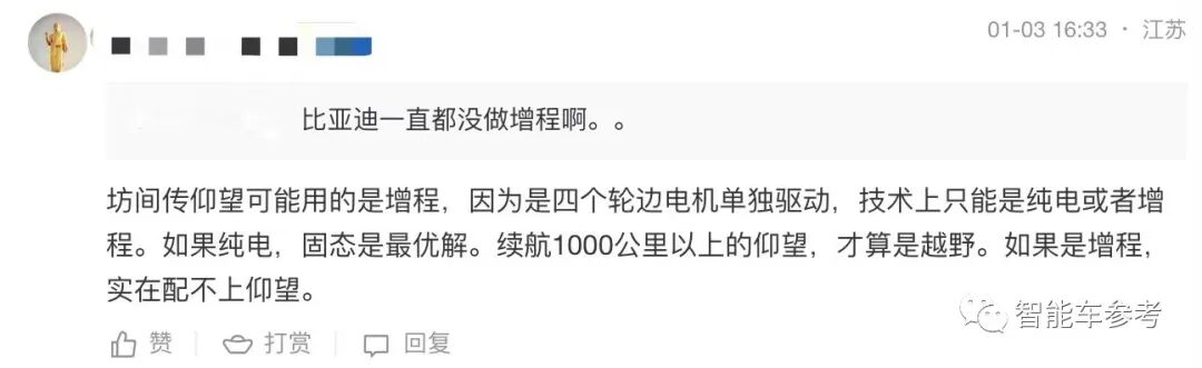 评论区里,网友们也齐刷刷发表观点,认为仰望U8的确用上了增程。