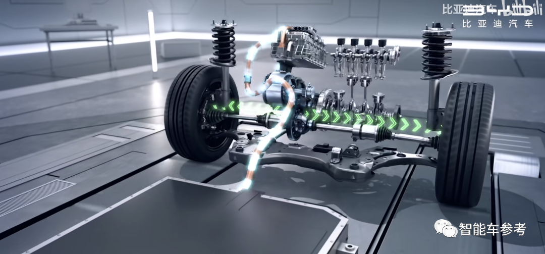 还需要特别说明的是,如果发动机能直驱车辆,那么电机就没法单独控制每个车轮轮端扭矩的大小和方向,这也与比亚迪官方介绍的不相符合。