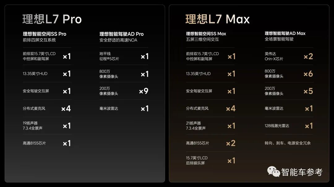 理想今后任何车型上的智能化,明确为两档Pro和Max。在智能座舱和智能驾驶上的硬件配置,软件能力、使用体验上各有不同。