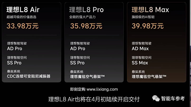 Air车型是此次理想新增提的入门型号,和Pro相比减配了魔毯空气悬架,但CDC自适应减震器依然保留,便宜2万块。
