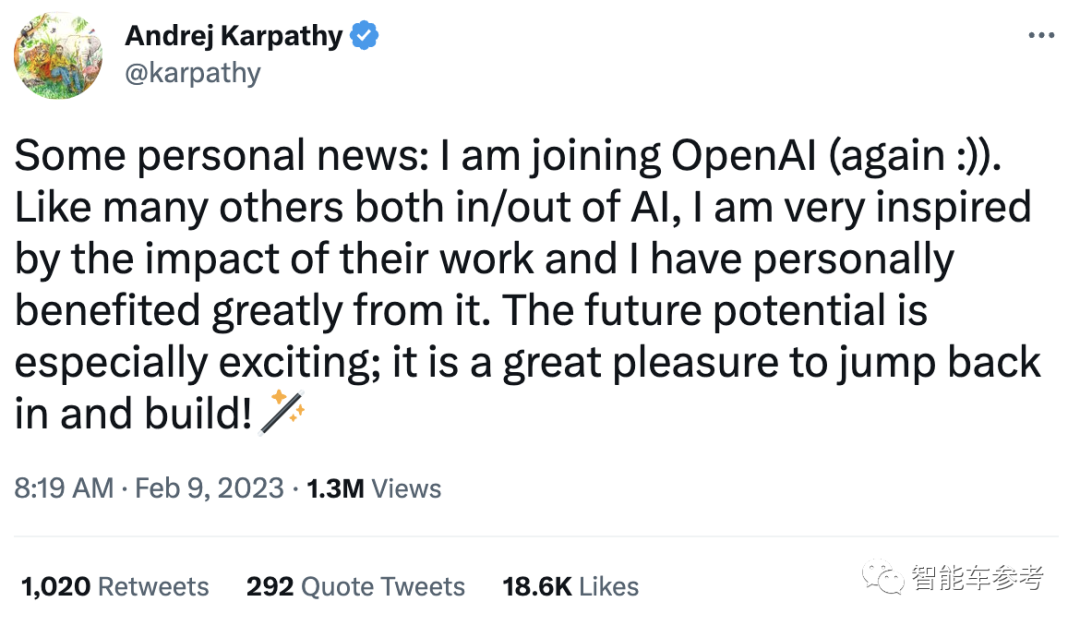 “Andrej Karpathy 再次加入 OpenAl 对人工智能社区和研究领域具有重要意义,可以为未来的 Al 发展带来有益的影响。”