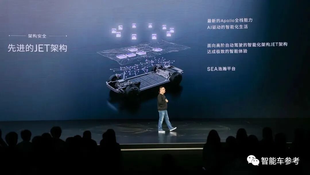 集度自研核心技术——高阶自动驾驶智能化架构JET,融合吉利SEA浩瀚平台和SOA操作系统,承载融合高阶自动驾驶能力和AI能力。