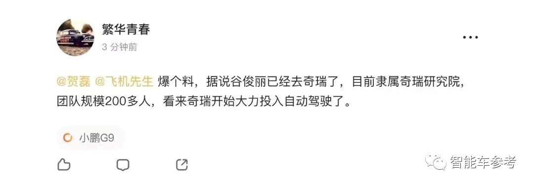 特斯拉前技术专家、小鹏前自动驾驶副总裁,现在转投奇瑞——