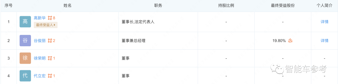 按照已经变更的工商资料,谷俊丽正式加入奇瑞控股的大卓智能科技,担任董事兼总经理。