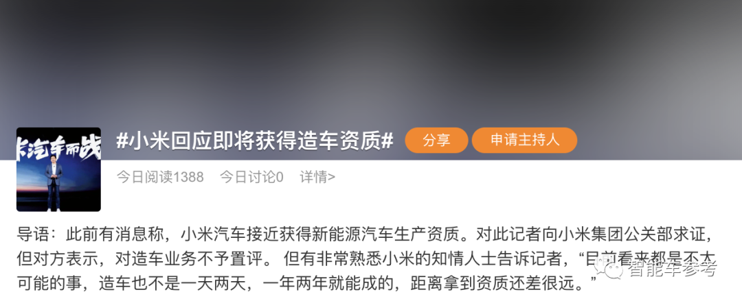 甚至今年年初,一度传出小米造车项目被叫停的消息。不过后来小米官方出来辟谣,造车项目一切进展顺利。