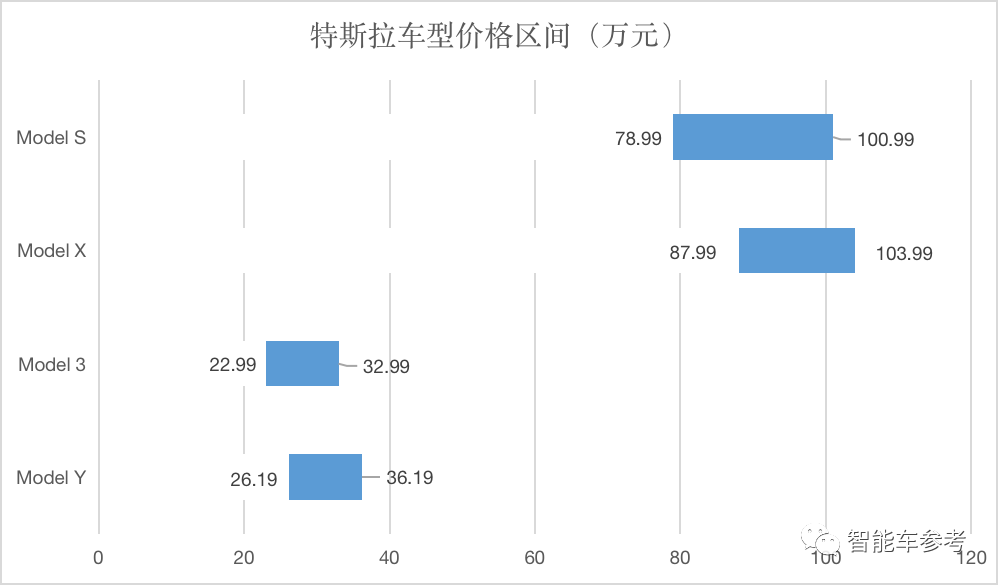 今年,特斯拉调整了全球Model 3和Model Y的售价,虽然后来Model Y车型又微微上涨,但结合现有四款车型来看,整体覆盖区间还是在20万元以上。