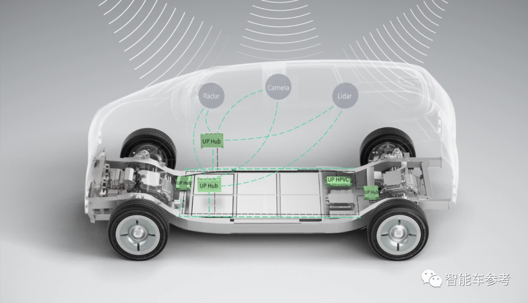 其中这套CCCA神经系统(CCCA:Communication、Computing and Control Architecture),是悠跑底盘的通信计算与控制架构,由UP Hub超级枢纽和UP HPVC超算平台组成。