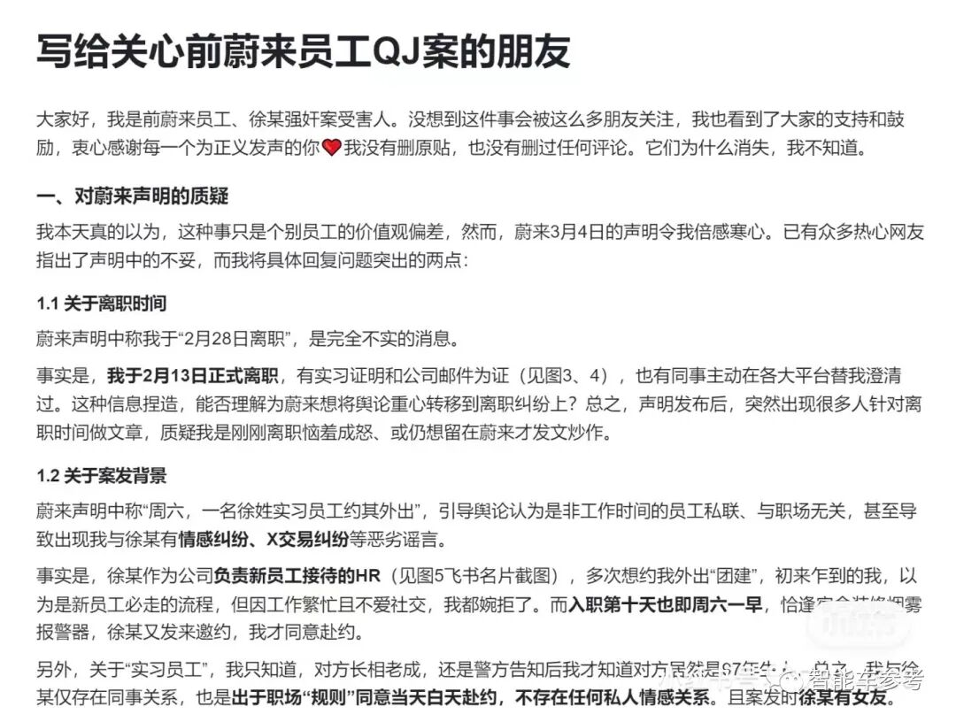 清华女生在蔚来遭性侵,HR以“影响公司形象”拒绝留用!官方回应了