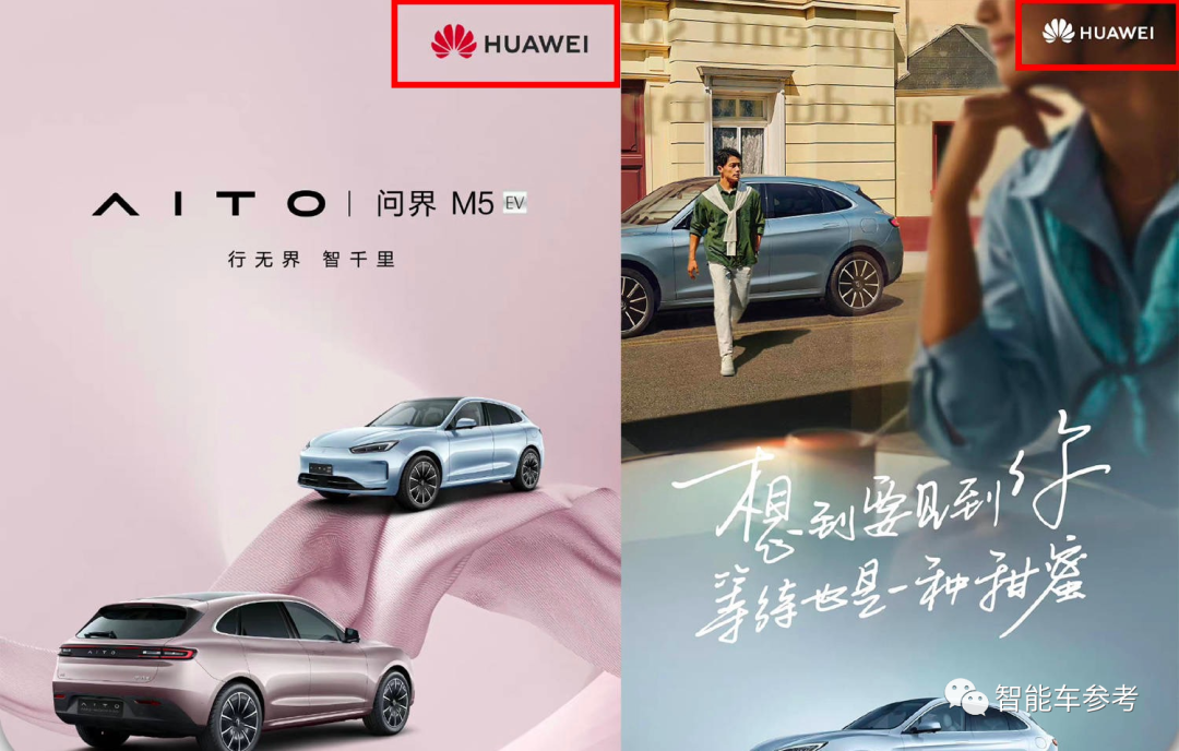 今年2月,在问界官方发布的海报中,其右上角Logo从AITO曾短暂换成了华为品牌Logo。