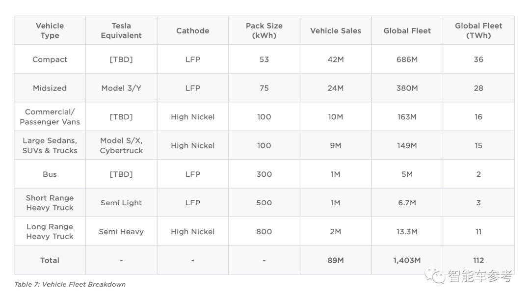 紧接着,特斯拉以自己为代表举例,估算分配到具体不同车型上,各自采用什么样的电池材料,以及电池包容量、预估年销量、预估保有量大概需要多少。