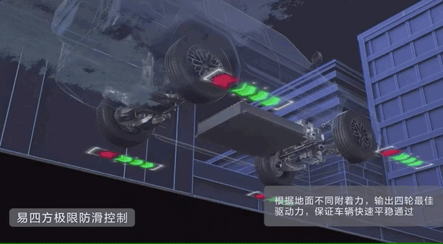 这也是四轮电机四驱相比于传统分动箱四驱的优势:不需要动力分配,也不用差速器来实现前后轮的差速调节,能减少能量损失,提高动力传递效率,还能减少响应时间。